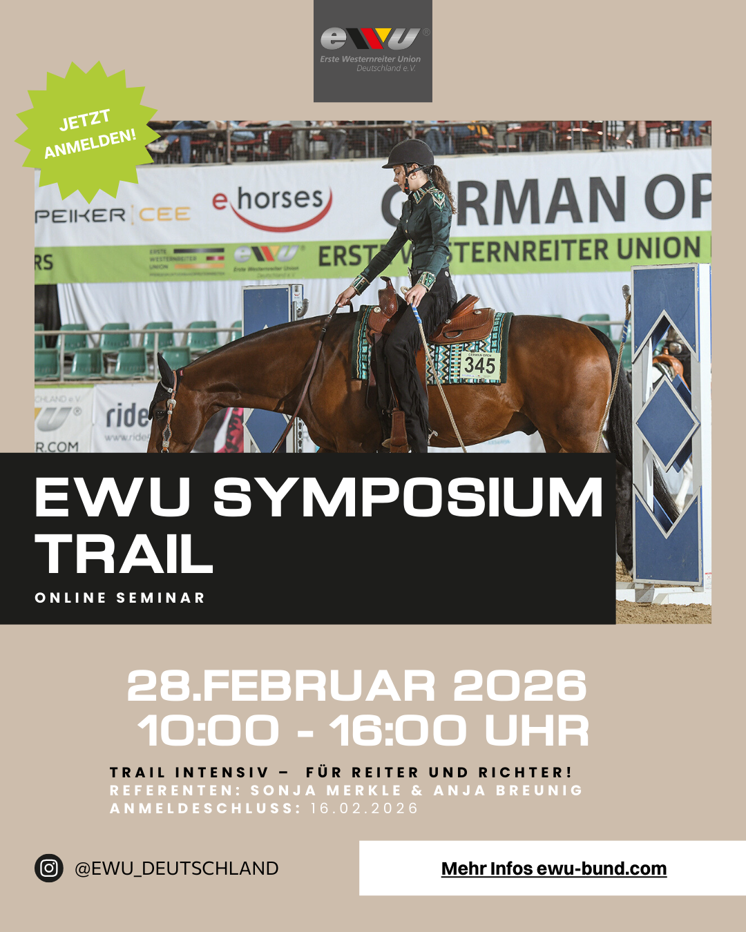 Trail gehört zu den vielseitigsten und anspruchsvollsten Disziplinen im Westernreiten. Unser Online-Symposium bietet dir die Möglichkeit, dein Wissen zu vertiefen und die Feinheiten dieser faszinierenden Disziplin besser zu verstehen.